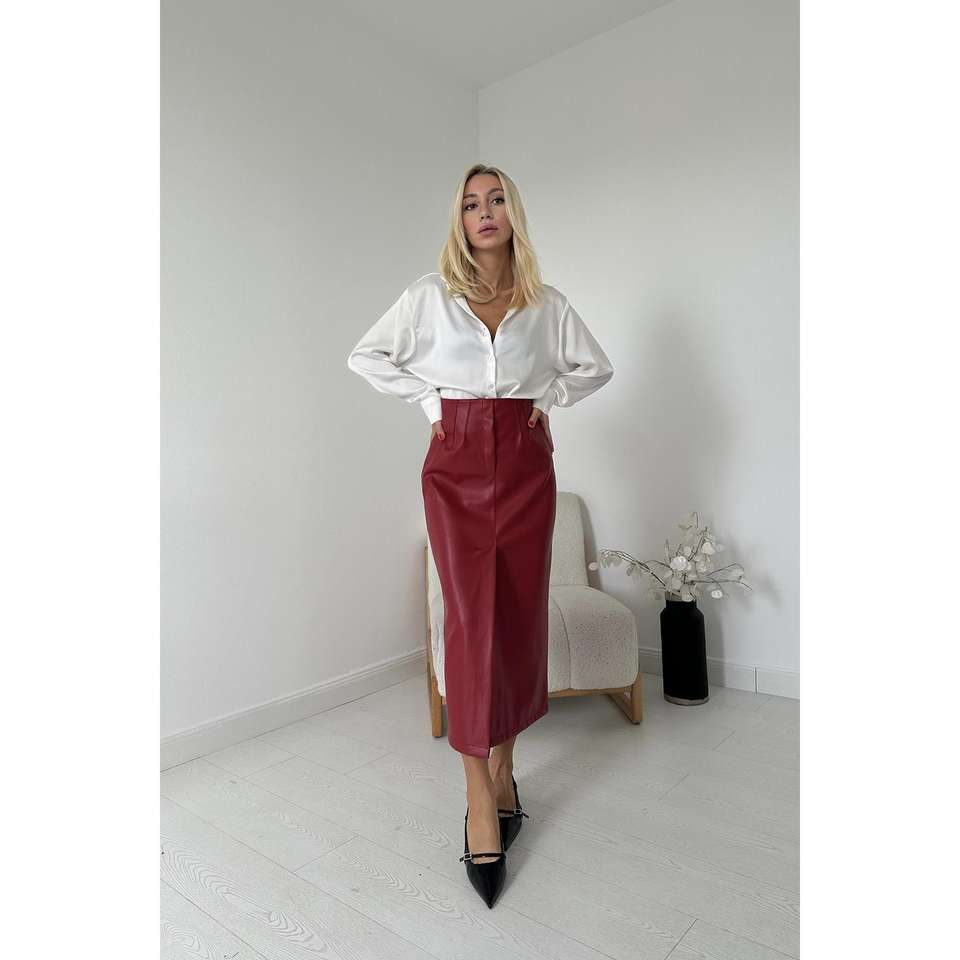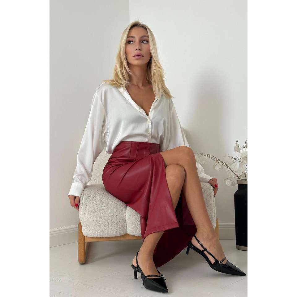 Wholesale Satin Chiffon Knitted Wrap Skirt Burgundy Slit Decorative Placket Empire Vintage Print Design Plus Size Option