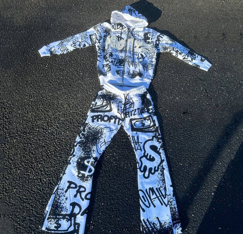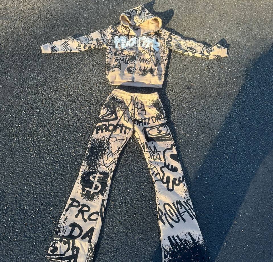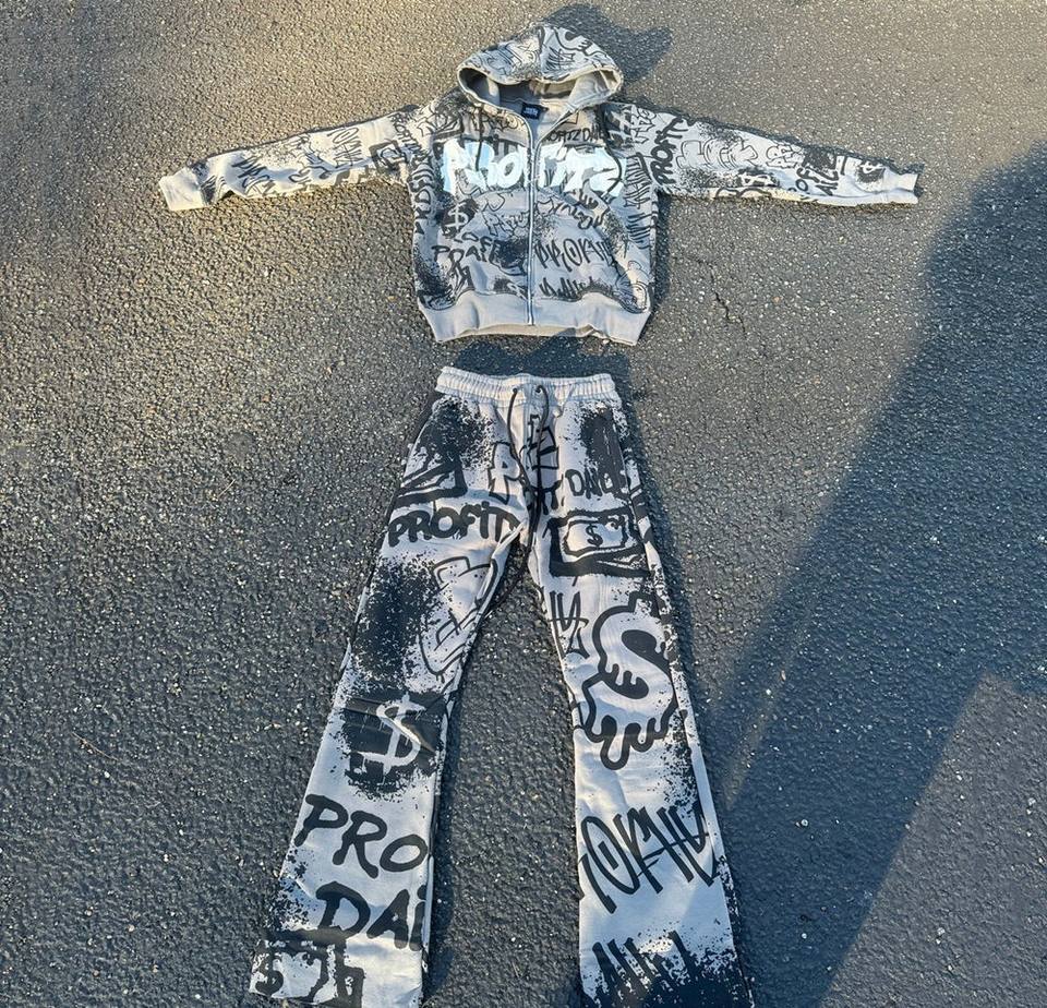 Streetwear vintage sérigraphie avec logo et lettre, ensemble de pantalons de survêtement baggy à capuche et fermeture éclair graffiti délavés à l'acide, vente en gros