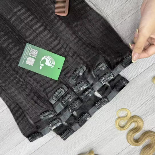 Extensions de cheveux à clips sans couture en gros, 100% cheveux humains Remy, lisses crépus, cheveux vietnamiens