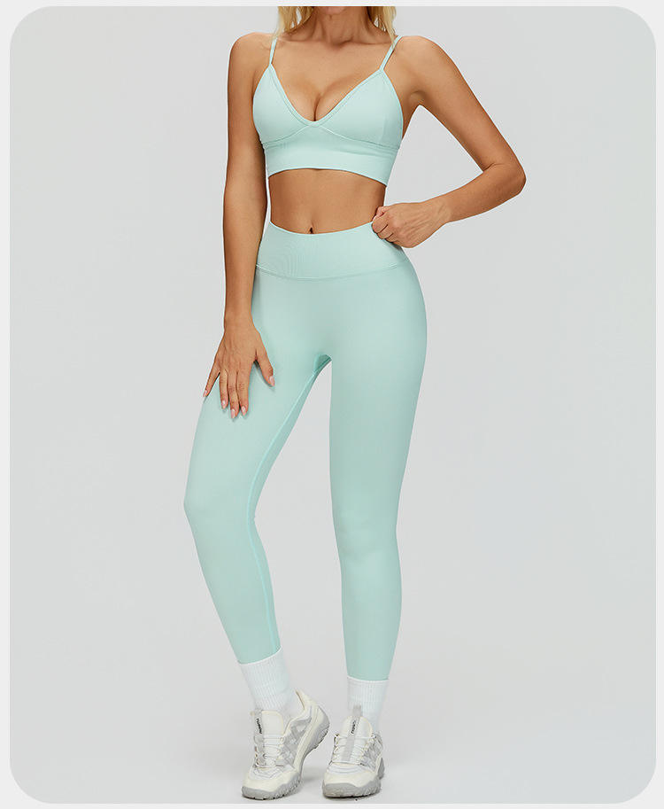 Ensembles d'entraînement 2 pièces sans couture doux pour femmes, soutien-gorge de sport à maintien élevé, vêtements de fitness et yoga, logo frontal, respirant, coloré