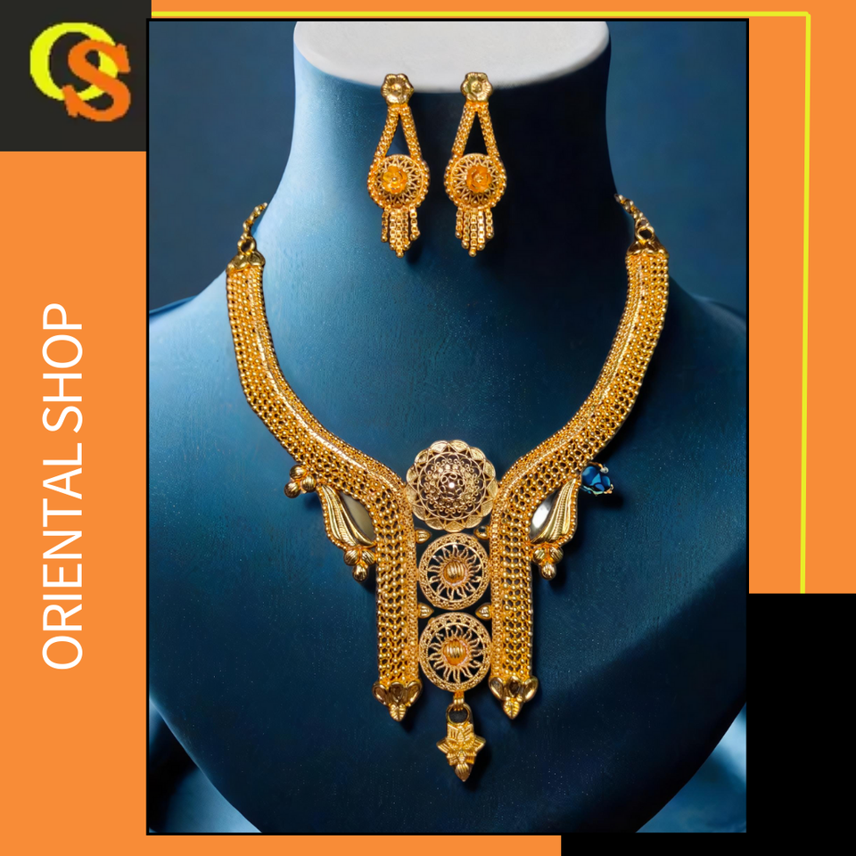 Wholesale Selling Necklace Earrings Set with 22K Gold Plated Unique Designed Women Wear Necklace Earrings Set Jewelry