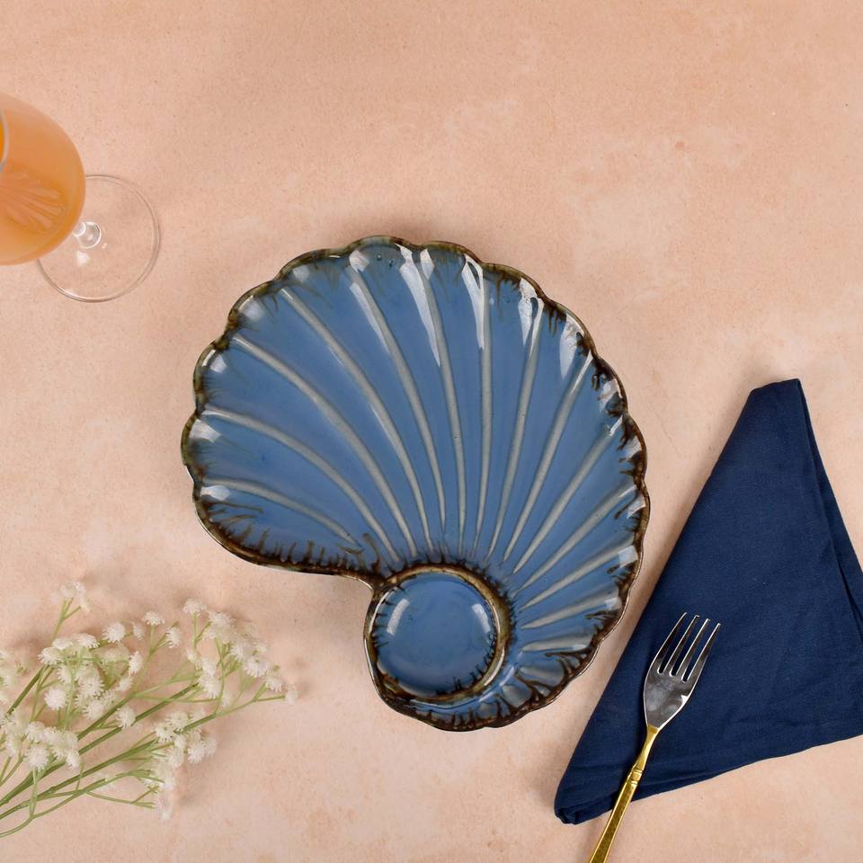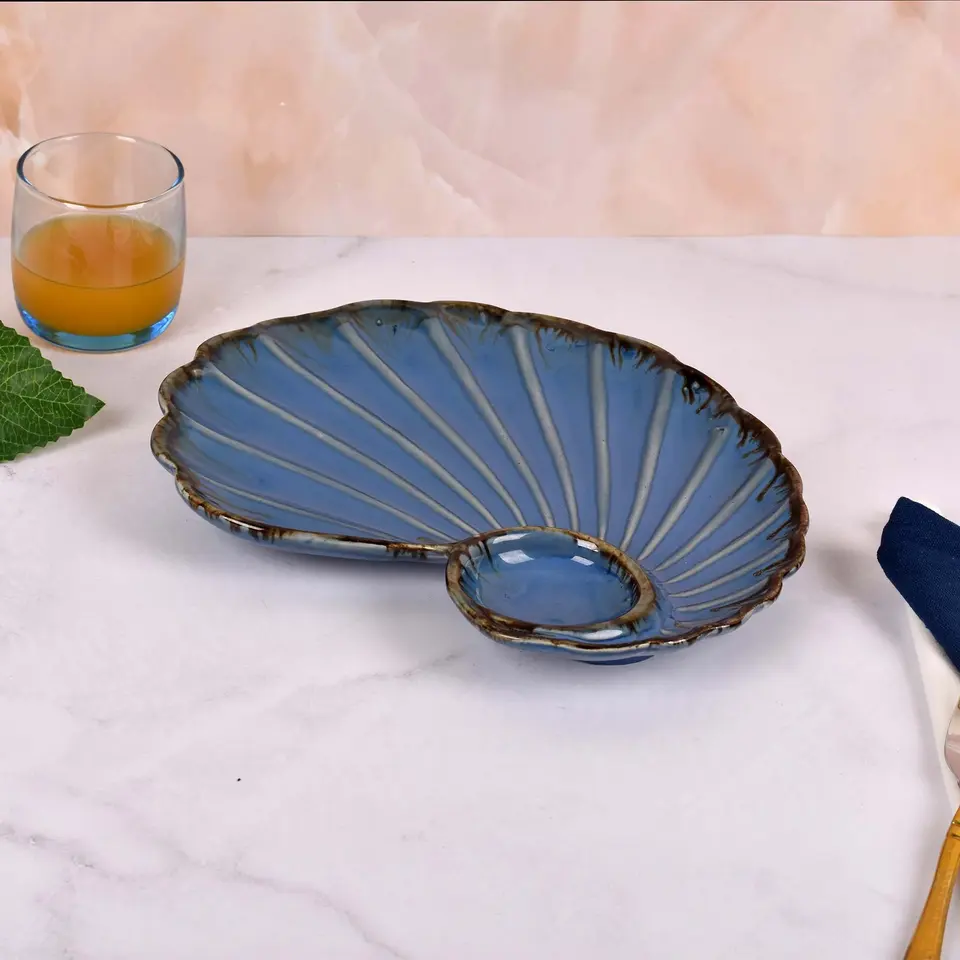Plat en céramique en forme de coquille, vaisselle en céramique, plat de service, plats et assiettes d'hôtel pour servir des collations