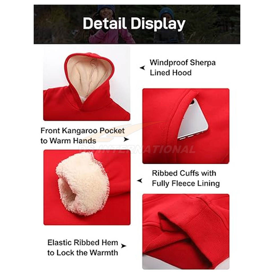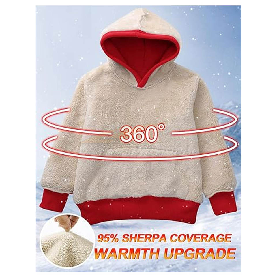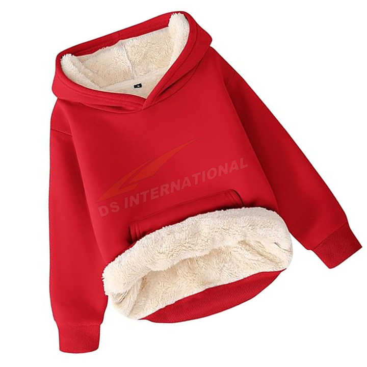 Wholesale Sherpa Fleece Hoodie for Kids Warm Pullover Sweatshirt Comfortable Winter Hooded Sweater Red Color