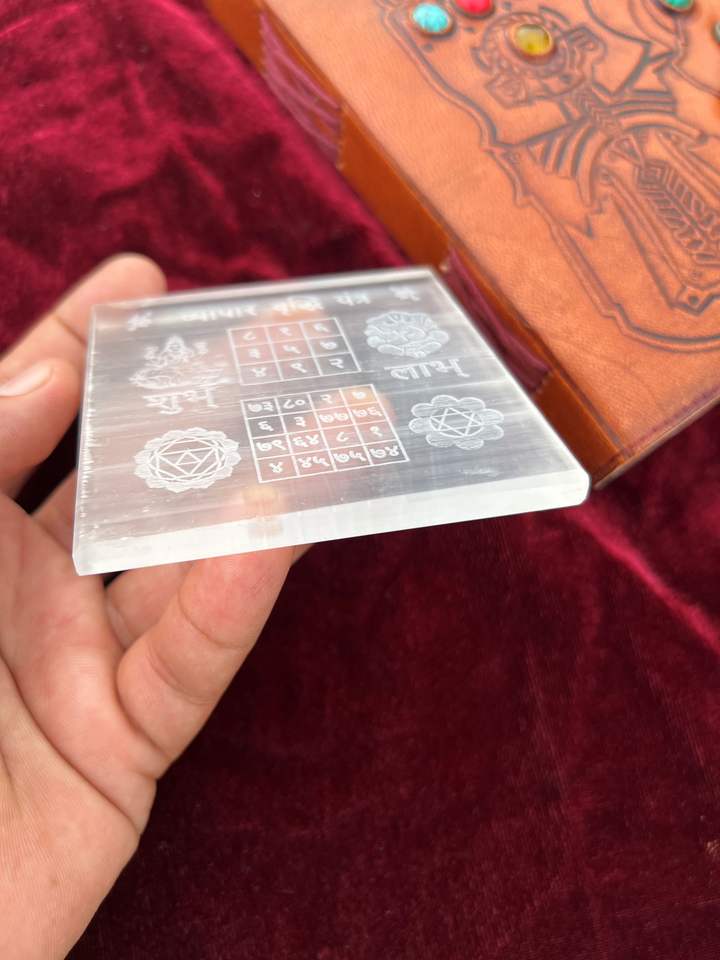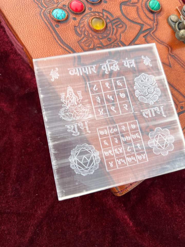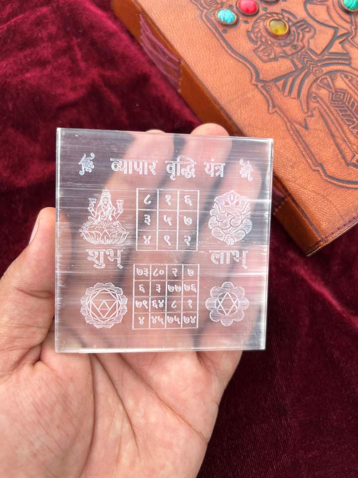Wholesale Shree Vyaapar Vriddhi Yantra Selenite Stone Plate Traditional Spiritual Tool for Business Growth Good Health