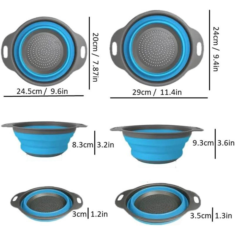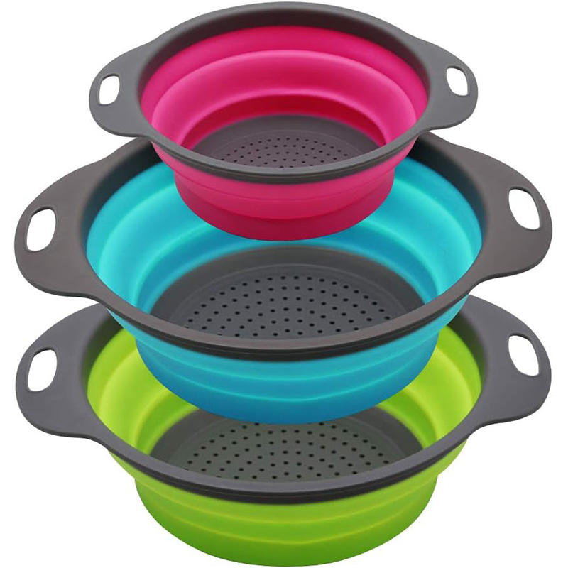 Ensemble de passoires et d'égouttoirs pliables en silicone pour légumes, fruits, pâtes et paniers d'égouttage de cuisine, design rond pliable, vente en gros