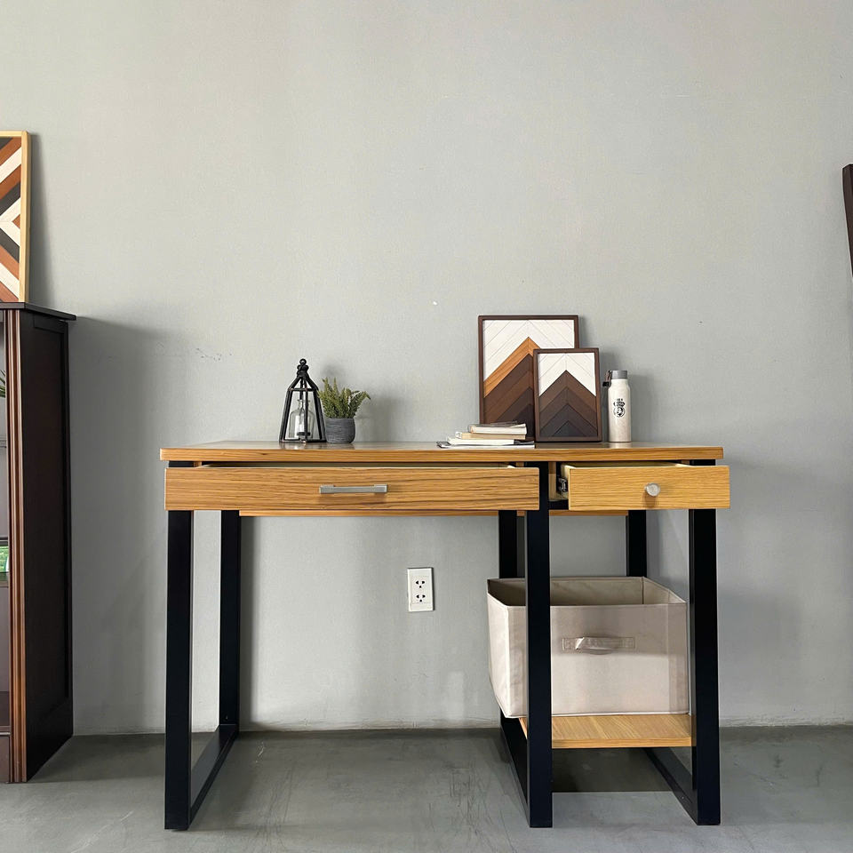Vente en gros de bureau d'ordinateur moderne multifonctionnel avec cadre en acier et double tiroir, mobilier de bureau simple et élégant
