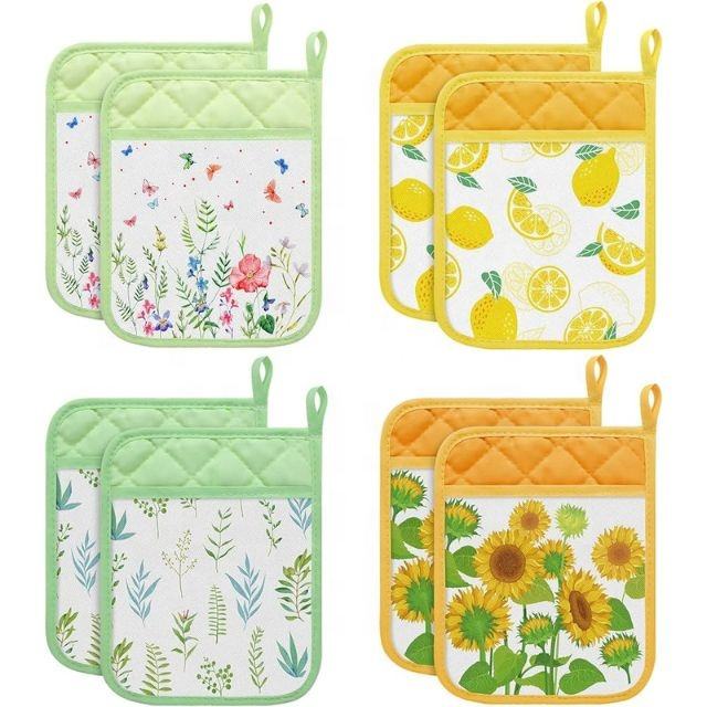 Wholesale Simple Geometric Stylish Durable 100% Organic Cotton Trendy Custom Anti-slip GOTS Certified Cooking Baking Pot Holder