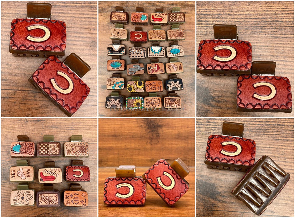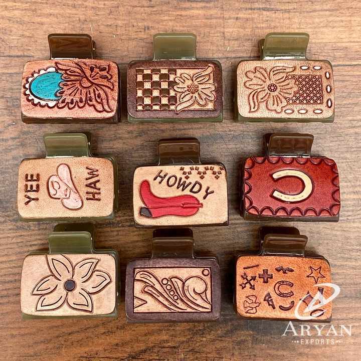 Product name:Tooled Leather Mini Hair Claw Clips