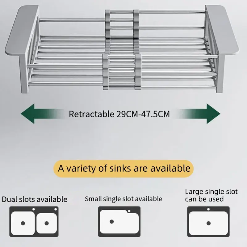 Panier de rangement coulissant simple en acier inoxydable pour cuisine, multifonctionnel, égouttoir à vaisselle, durable et écologique