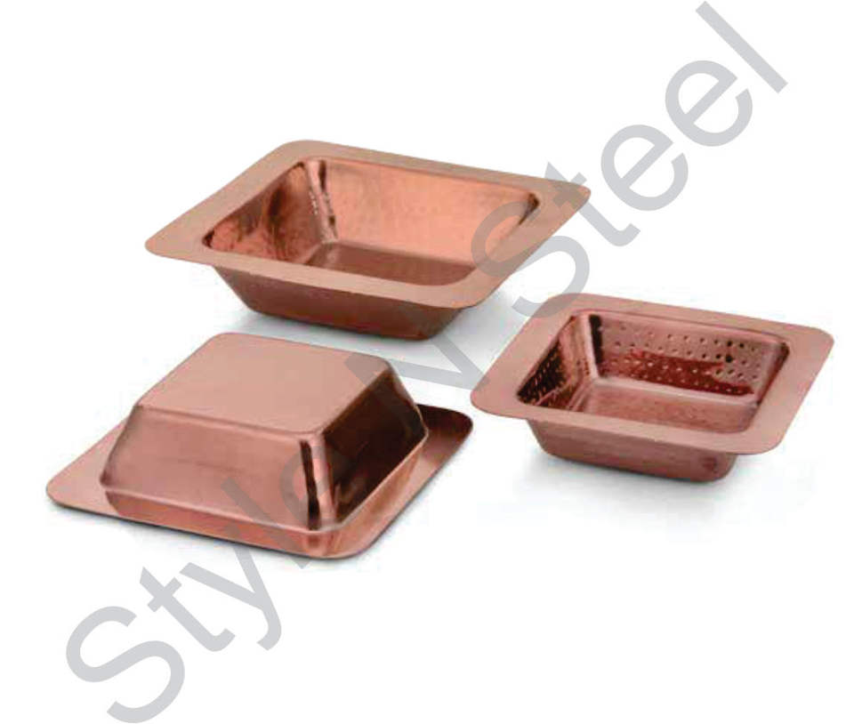 Vente en gros, marteau à paroi unique, plat d'entrée carré avec bol à œil de marché de couleur cuivre avec couvercle en acier inoxydable