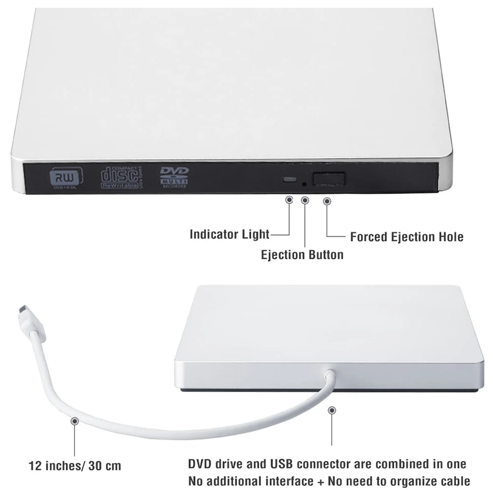 Vente en gros mince USB3.0 Type C lecteur optique externe DVD RW graveur de CD lecteur de lecteur de graveur pour ordinateurs portables et ordinateurs de bureau