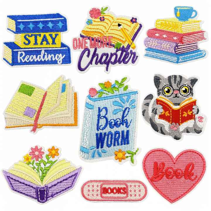 Patchs brodés personnalisés à coller sur les vêtements, en gros, petits, à découpe laser, à thème de lecture, à coller soi-même