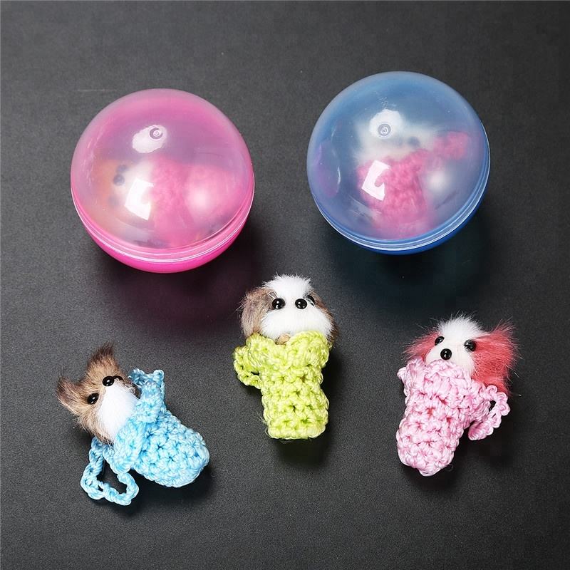 Vente en gros de petits jouets mignons en capsule de 2 pouces (50 mm), jouets en peluche pour animaux, tricot faits à la main, animaux dans un panier, porte-clés pour enfants