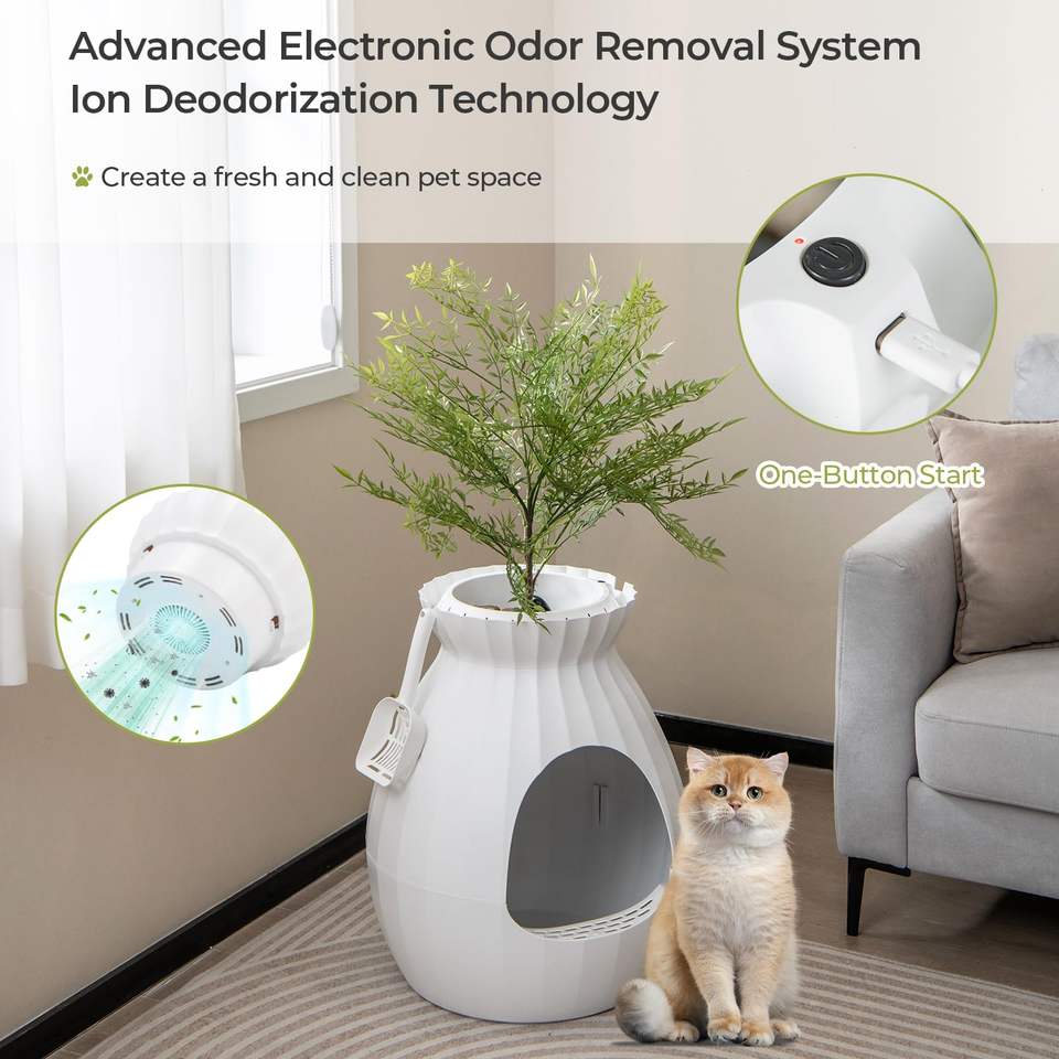 Vente en gros Bac à litière pour chat intelligent avec contrôle des odeurs Design de pot de fleurs élégant pour grands chats