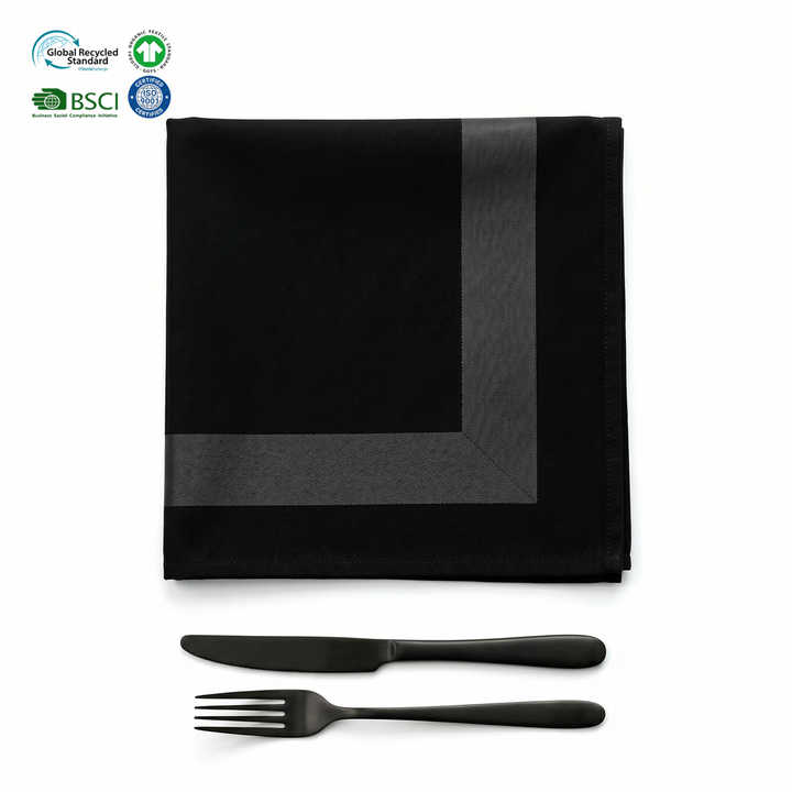 Serviettes en satin de coton noir doux et absorbant, 20x20 pouces, avec ourlet, réutilisables, pour la restauration, l'hôtellerie et la décoration d'événements.