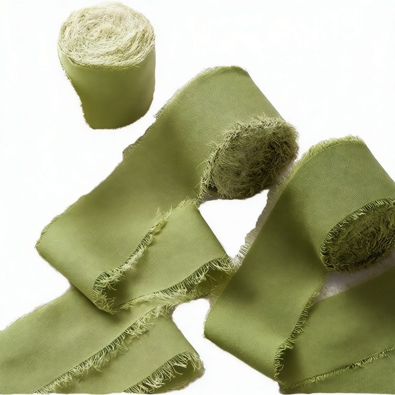 Ruban en mousseline douce en gros, ruban en tissu mousseline, ruban en soie mousseline fait main à bords bruts pour mariage
