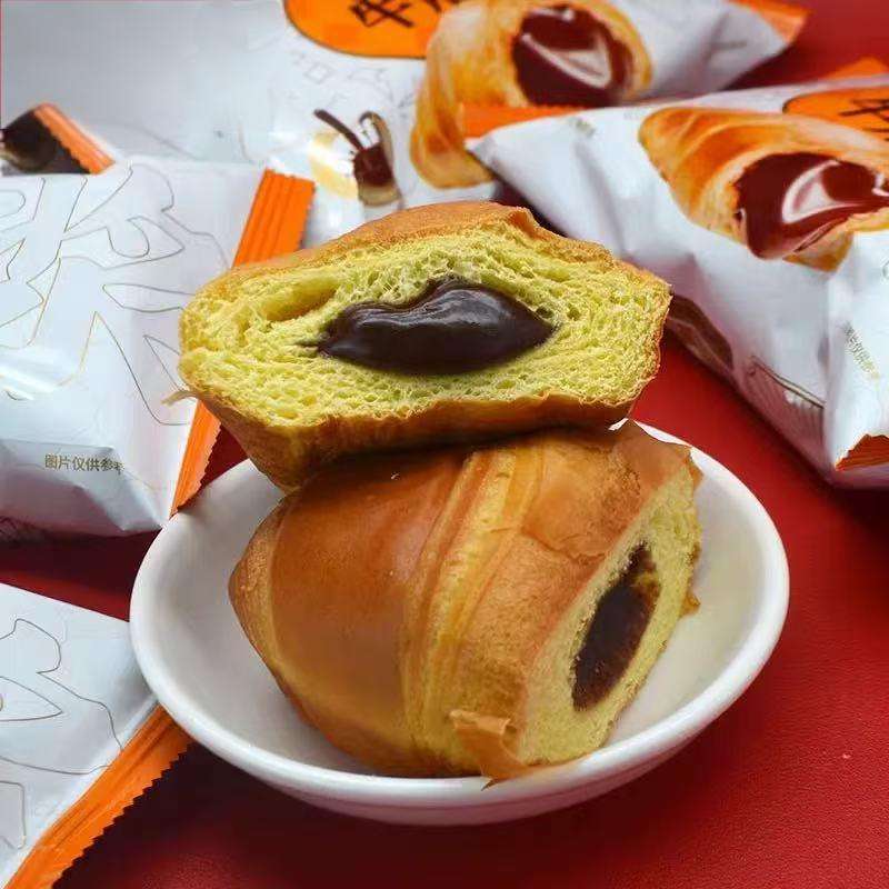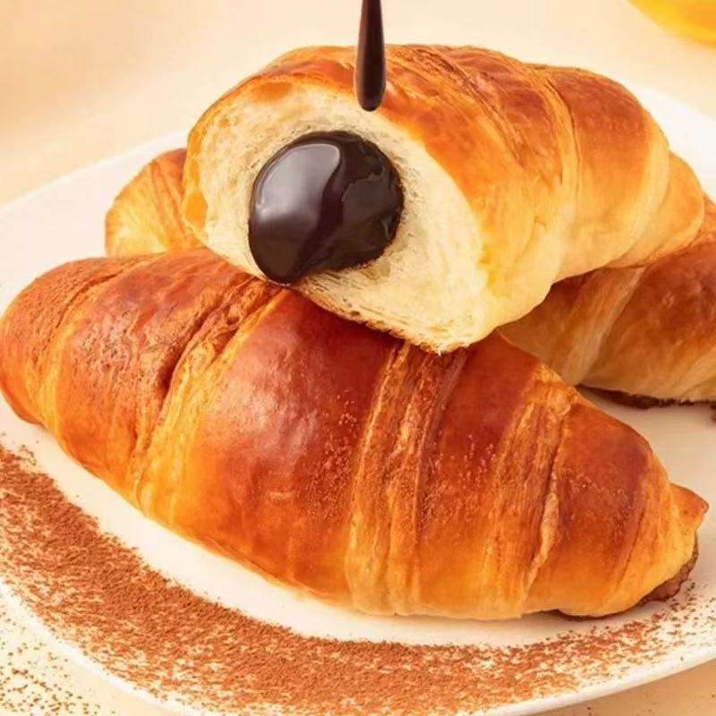 Wholesale Soft Wheat Flour Chocolate Filled Croissant with Melting Center and Cream Bulk Packaging