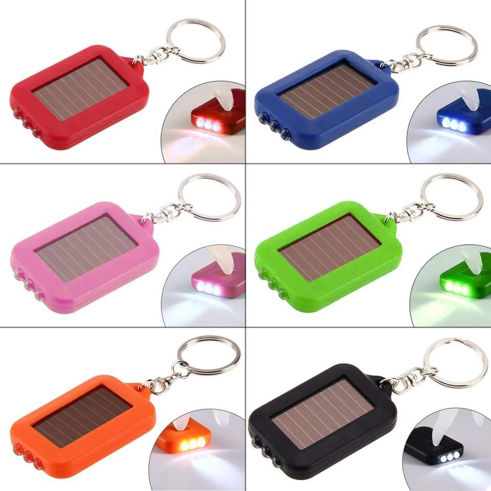 Lampe torche solaire puissante rechargeable en gros, 3 LED, porte-clés, lampe solaire multifonction, lampe de poche, porte-clés
