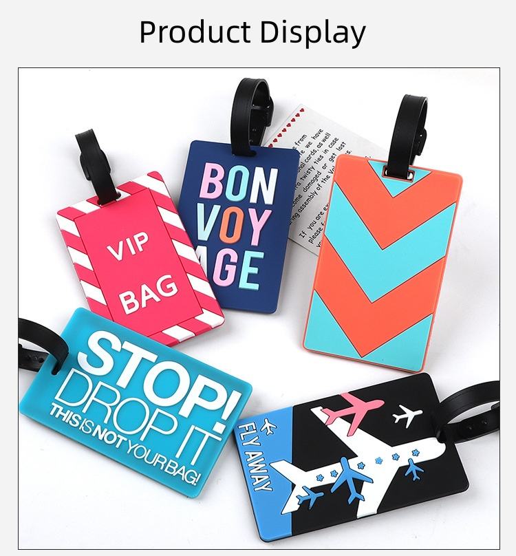 Étiquettes de bagages en PVC souple, étiquettes d'enregistrement, étiquettes créatives et mignonnes, fabrication chinoise, vente en gros