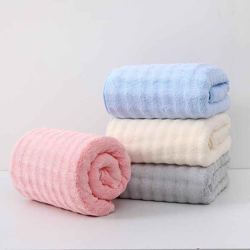 Ensemble de serviettes de bain en microfibre de couleur unie en gros, en polaire corail, absorbantes, douces, pour le visage, techniques de tricot pour un usage en voyage