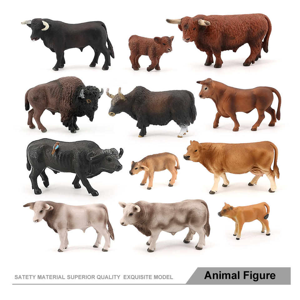 Figurines d'animaux en PVC solide en gros, modèle de statue de simulation, jouets de vache, figurines d'animaux, jouets