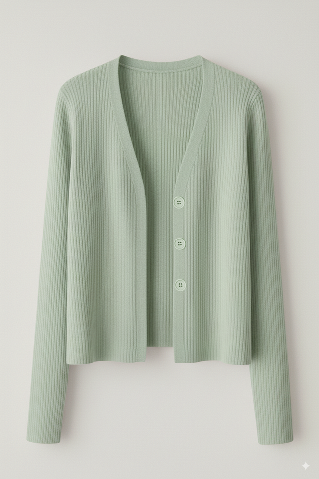 Cardigan court en tricot côtelé uni pour femme, col en V, décontracté, boutonné, manches longues, respirant, ensemble unique