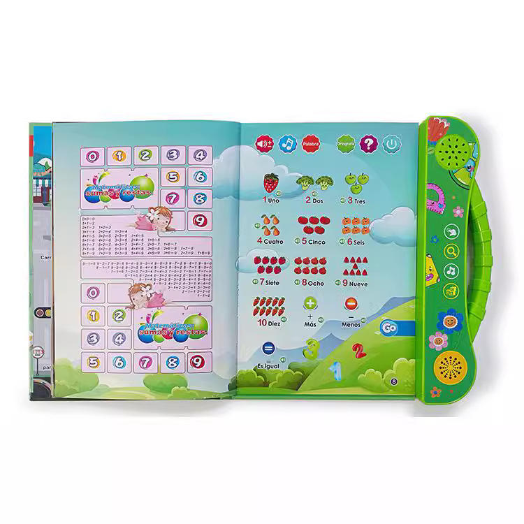 Lecture d'espagnol en gros jouets éducatifs interactifs d'apprentissage son en plastique livres électroniques espagnols livres audio pour enfants