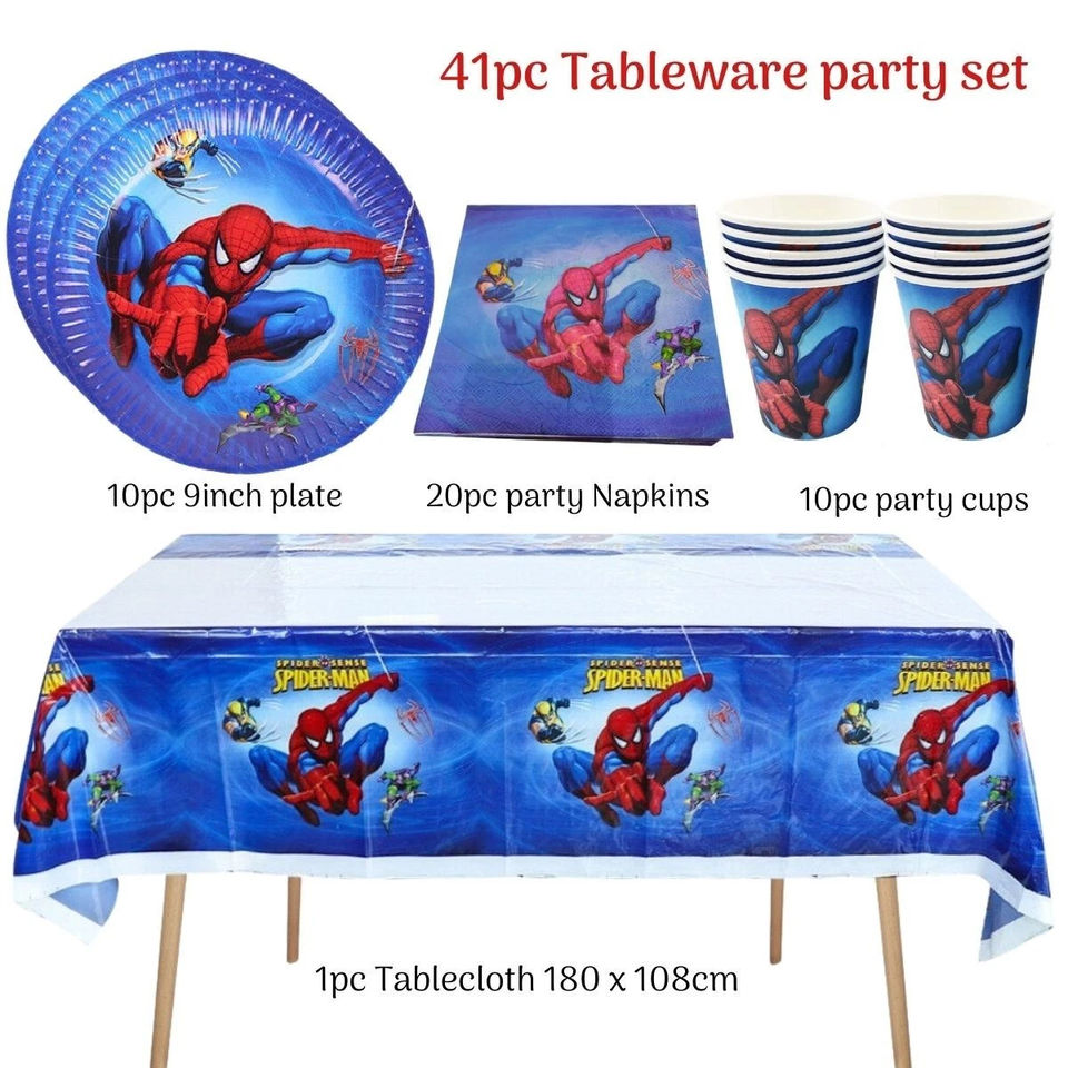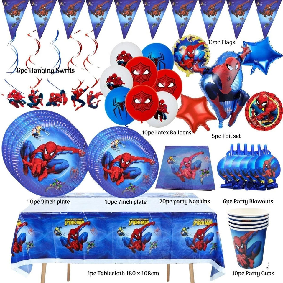 Ensemble de vaisselle de fête Spiderman en gros, gobelets en papier, assiettes, bannière pour fête d'anniversaire, ballons, fournitures