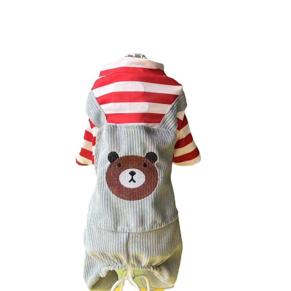 Vêtements pour chiens printemps-automne en gros, tenue rayée à quatre pattes motif ours, style décontracté pour petits et moyens chiens (Pomeranian)