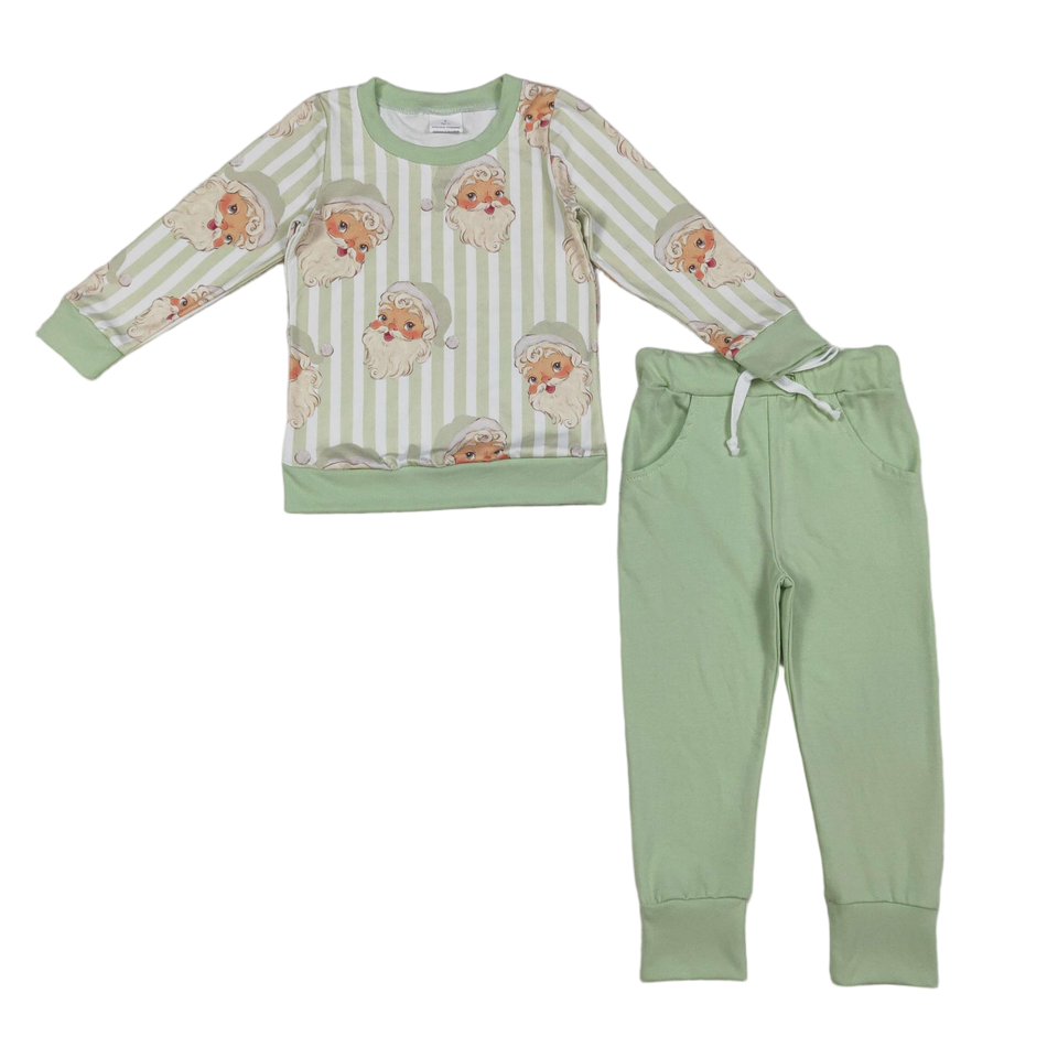 Pyjamas en soie à manches longues rayés verts de Noël pour garçons en bas âge - Nouveauté boutique