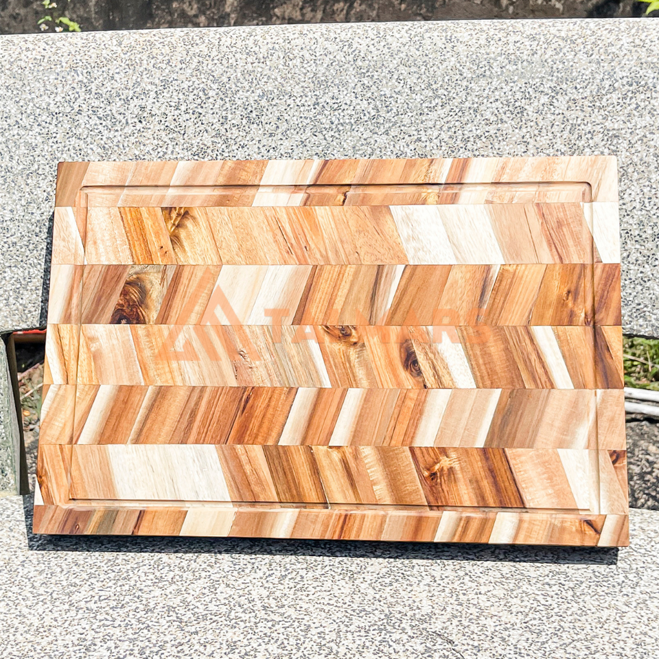 Wholesale Square Acacia Wood Finger Joint Herringbone Block Cutting Board Bamboo Chopping Meat Vegetable Rack for Kitchen Use