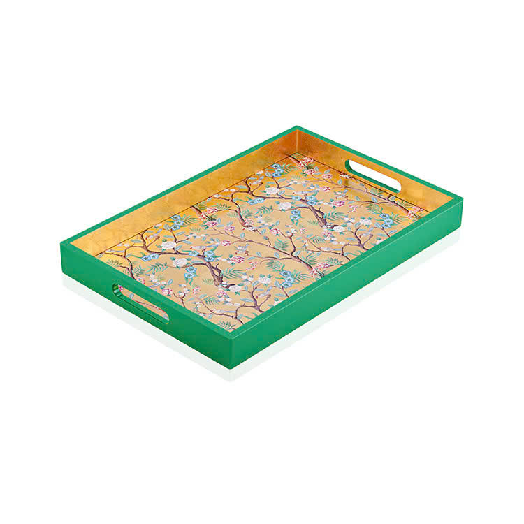 Square Lacquer Tray Blue with Beautiful Tree Pattern