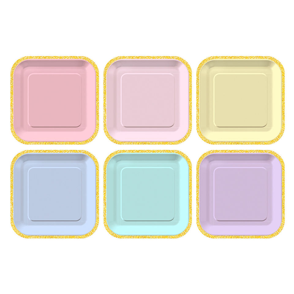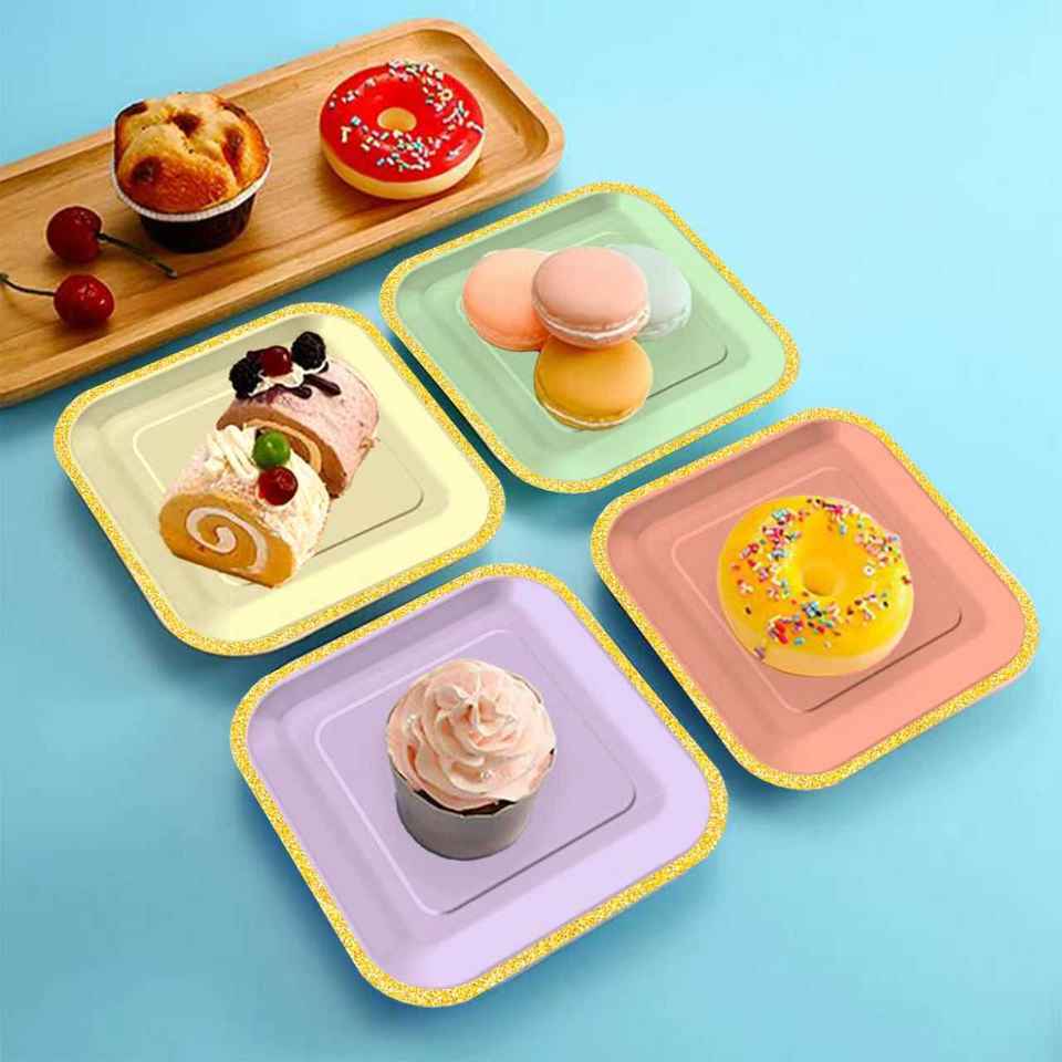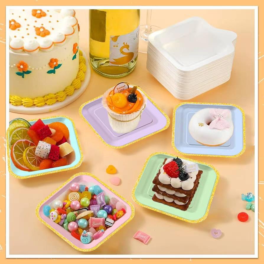 Assiettes en papier jetables carrées de couleur unie dégradée pour fêtes et pique-niques, assiettes à gâteau en papier