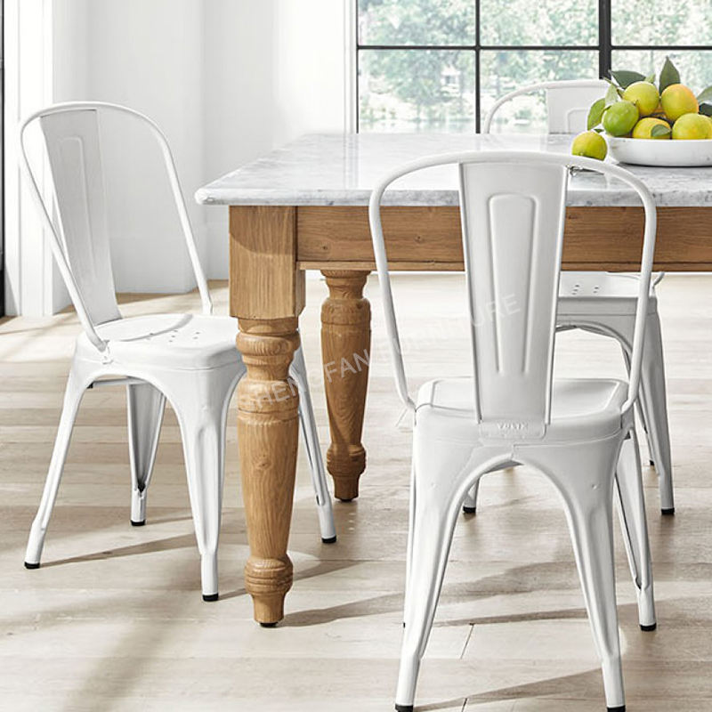 Chaises de café en acier noir empilables en gros, chaises de pub, chaises de salle à manger en aluminium pour hôtels, chaises Tolix pour restaurants