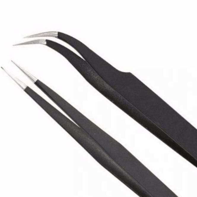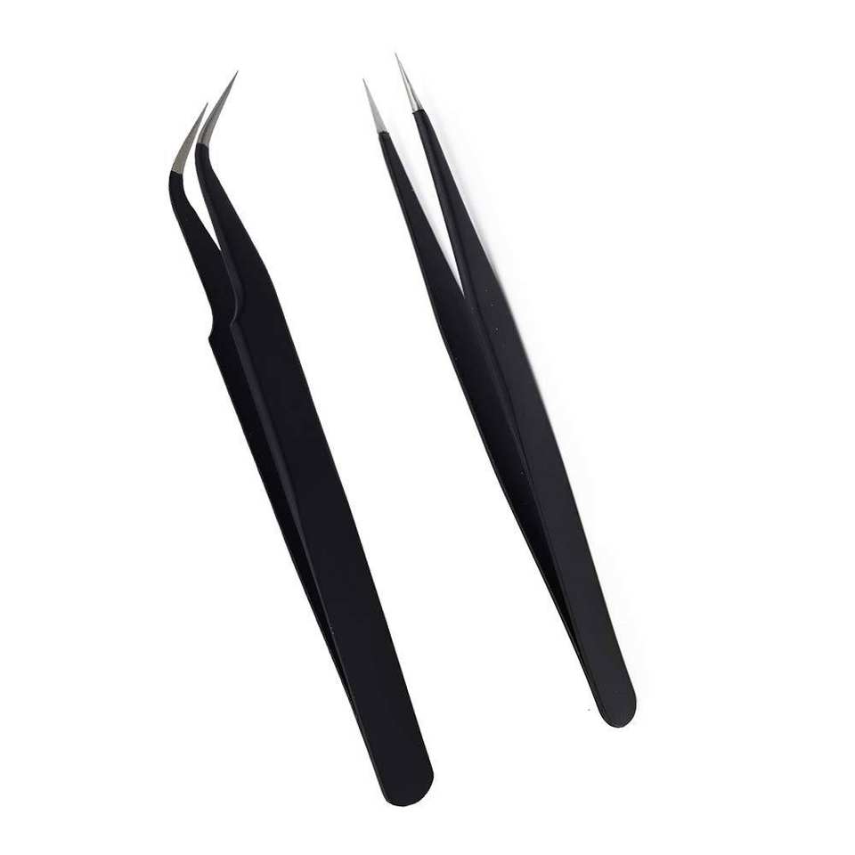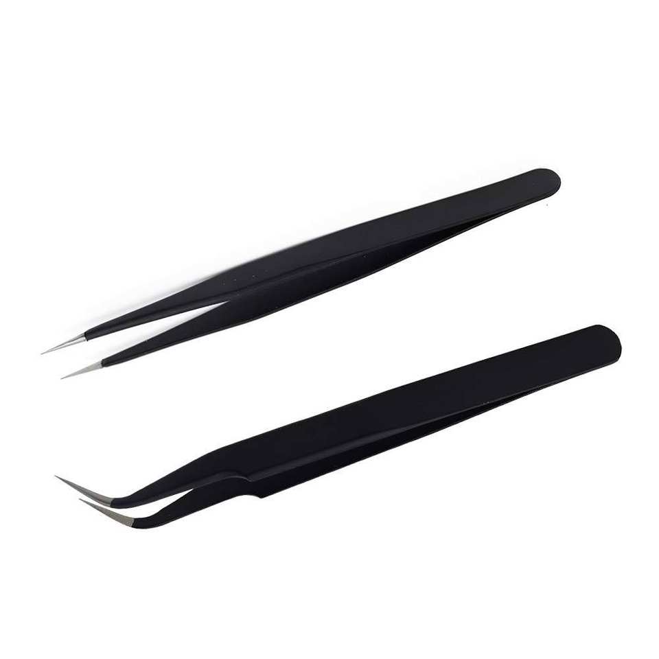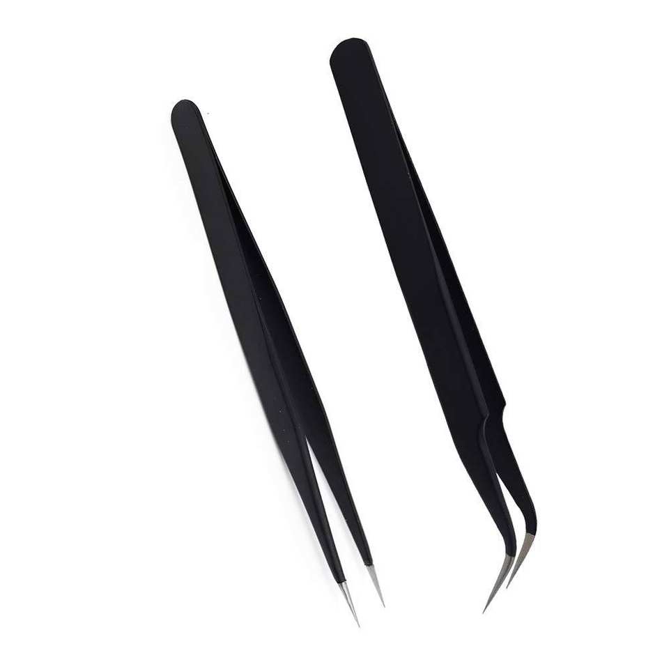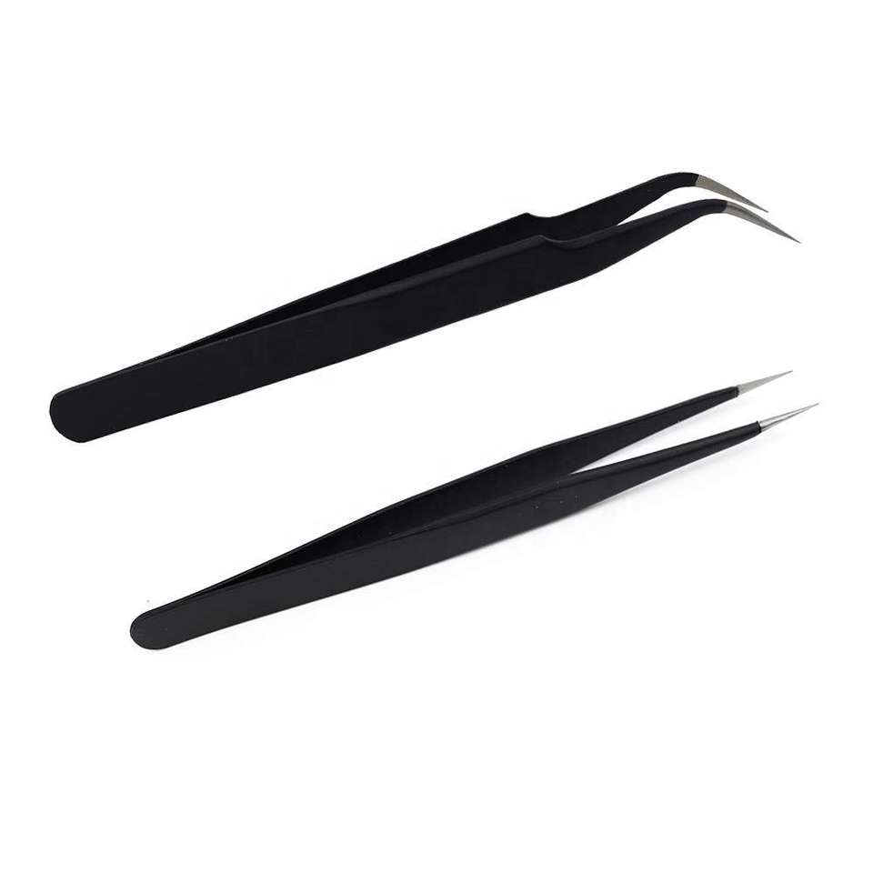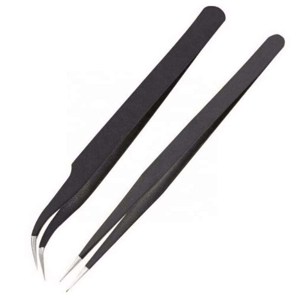 Lot de 2 pinces à épiler en acier inoxydable en forme de S et en forme de I, couleur noire, marque privée, vente en gros