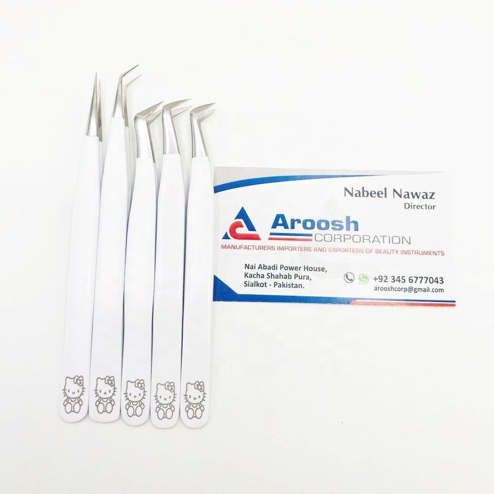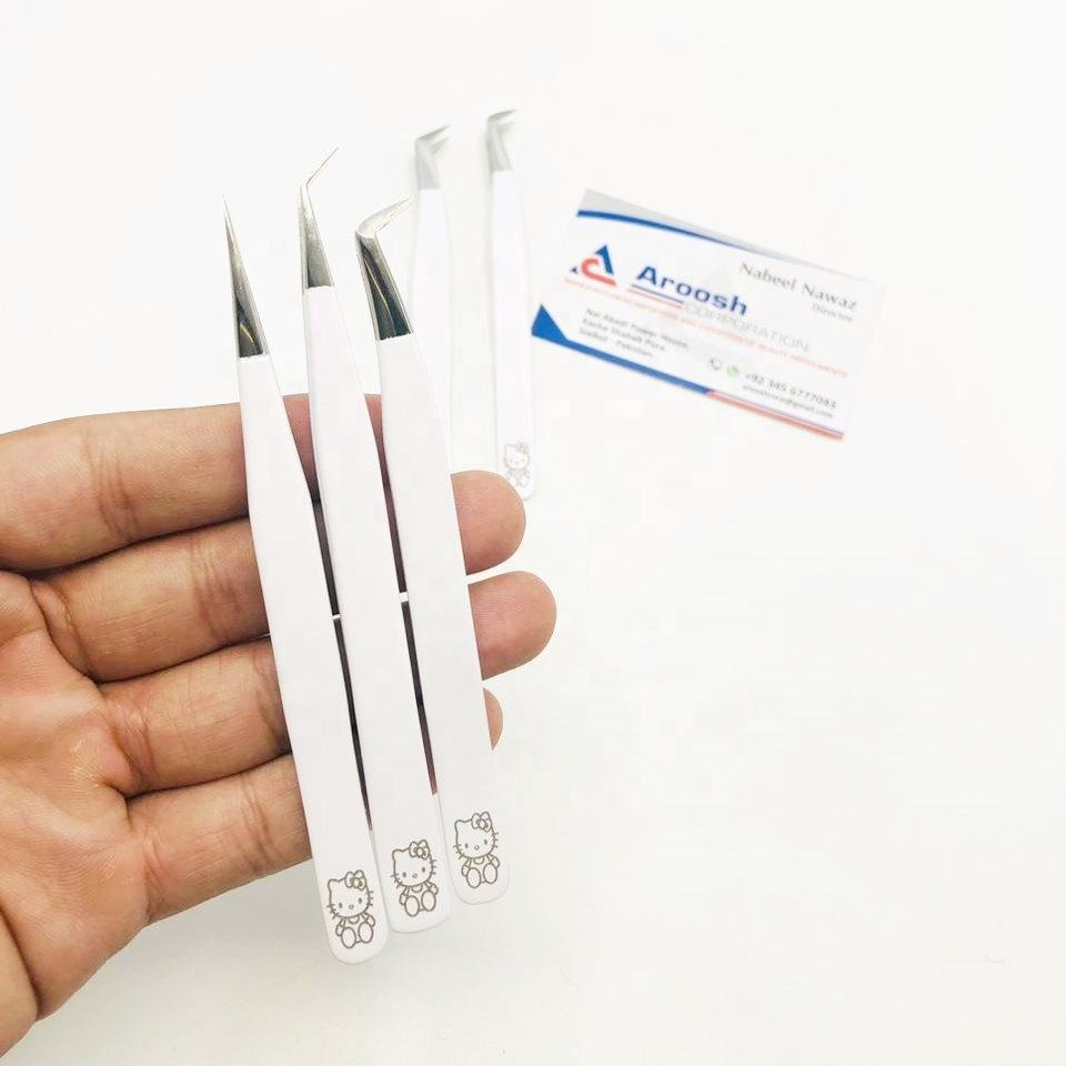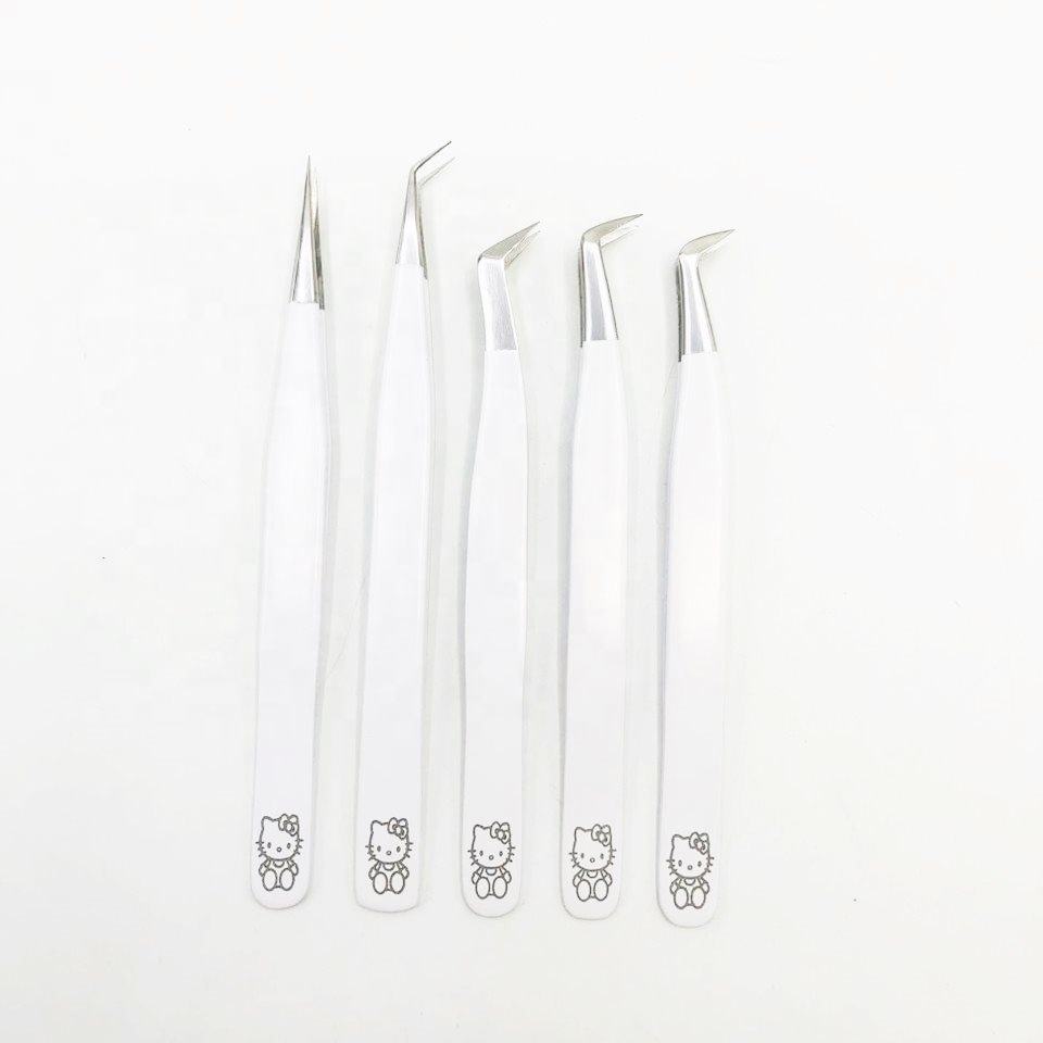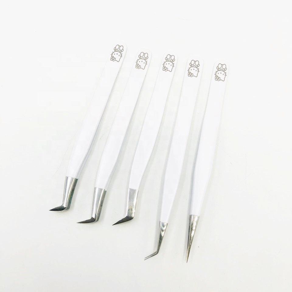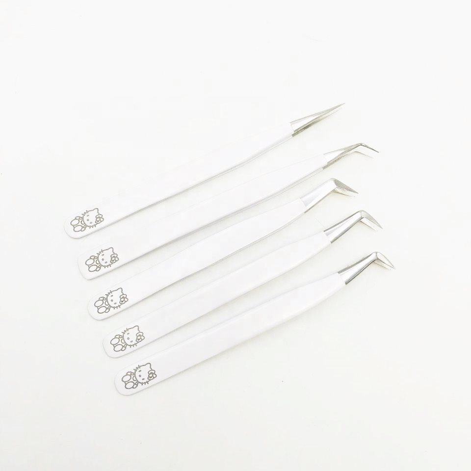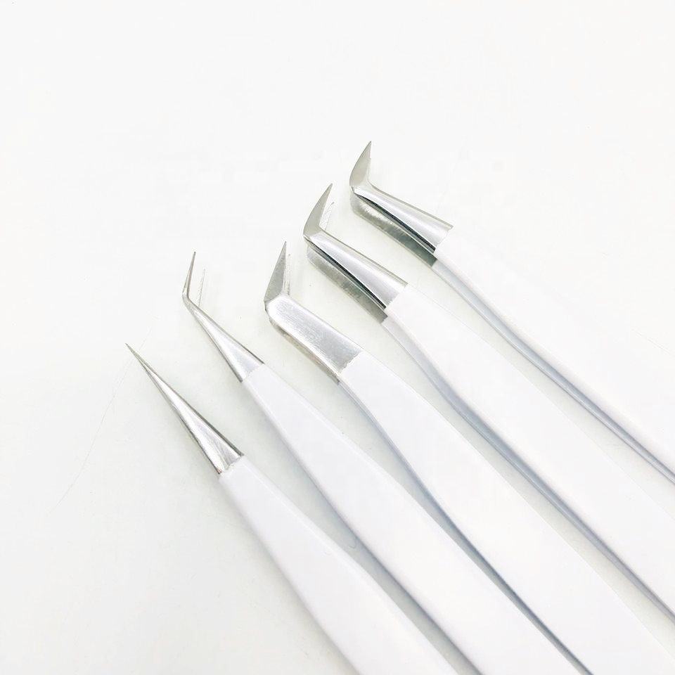 Ensemble de pinces à épiler à revêtement blanc à 45 degrés d'isolation de volume russe en acier inoxydable vente en gros pince à épiler d'extension de cils durable