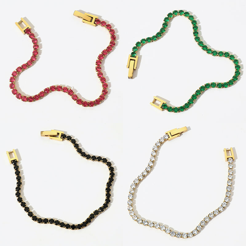 Bracelets en acier inoxydable avec incrustation de zircon, bijoux de luxe, bracelet à boucle colorée pour jeunes femmes, vente en gros
