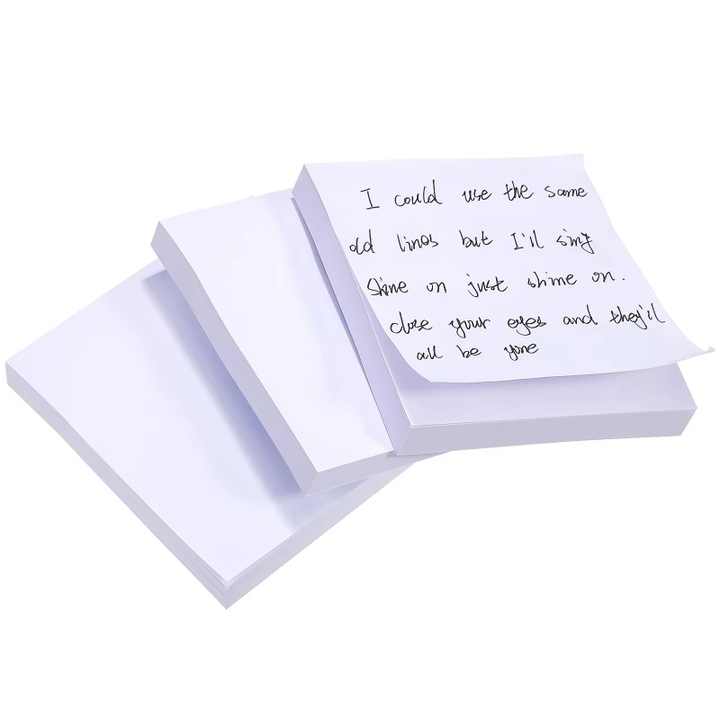 Vente en gros de papeterie, notes autocollantes carrées blanches, blocs-notes autocollants vierges, bloc-notes autocollants