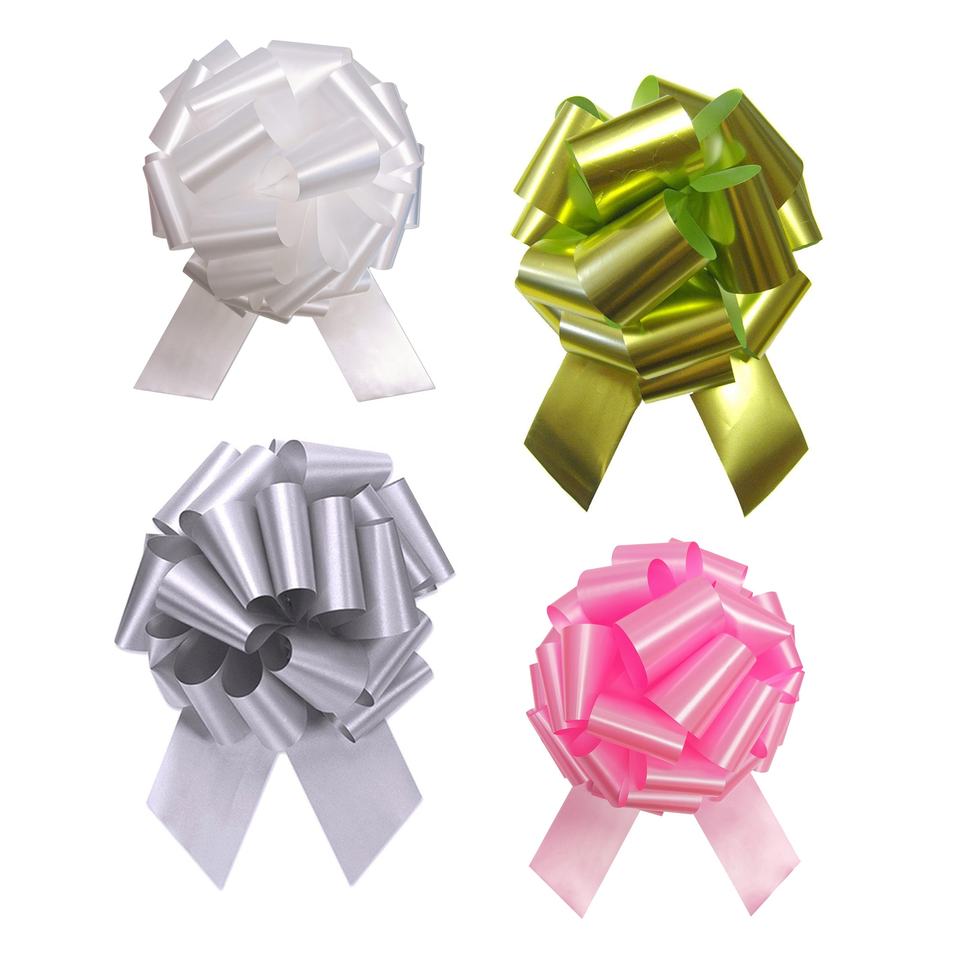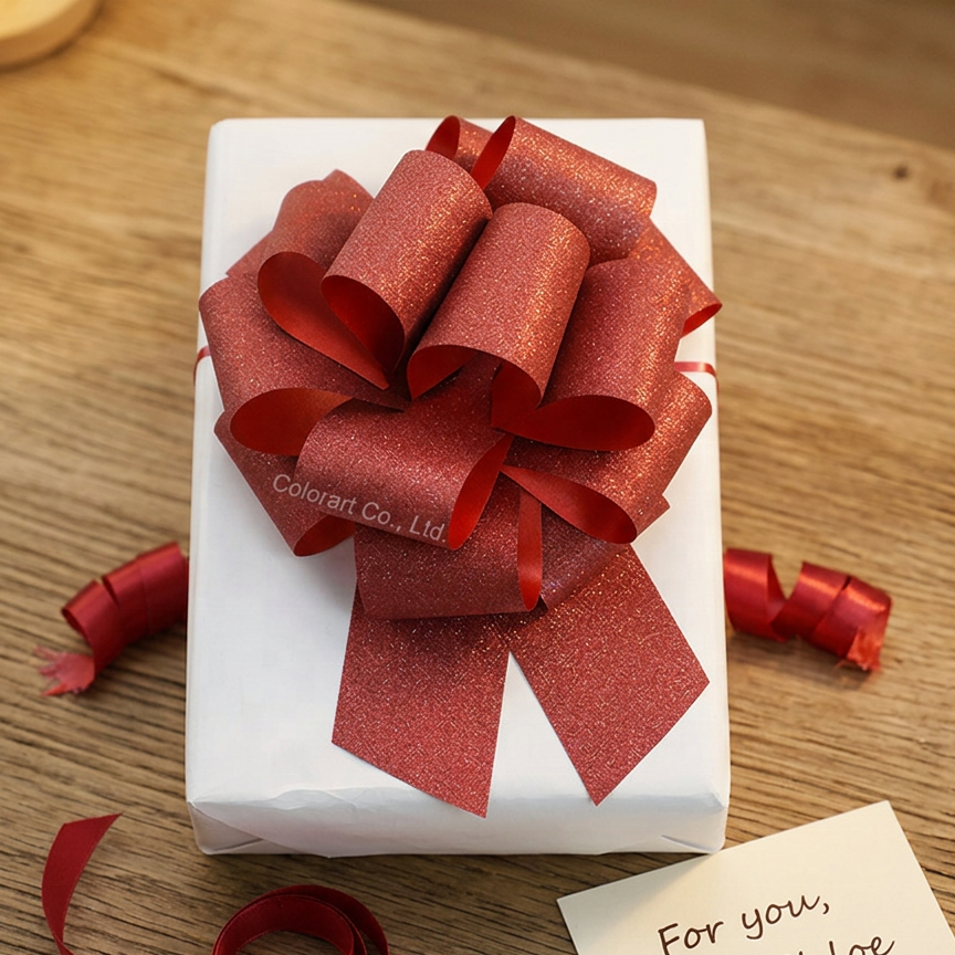 Ruban en satin coloré en gros, ruban bouclé en PP, nœud brillant effet laser, nœud géant à tirer pour boîtes cadeaux de Noël