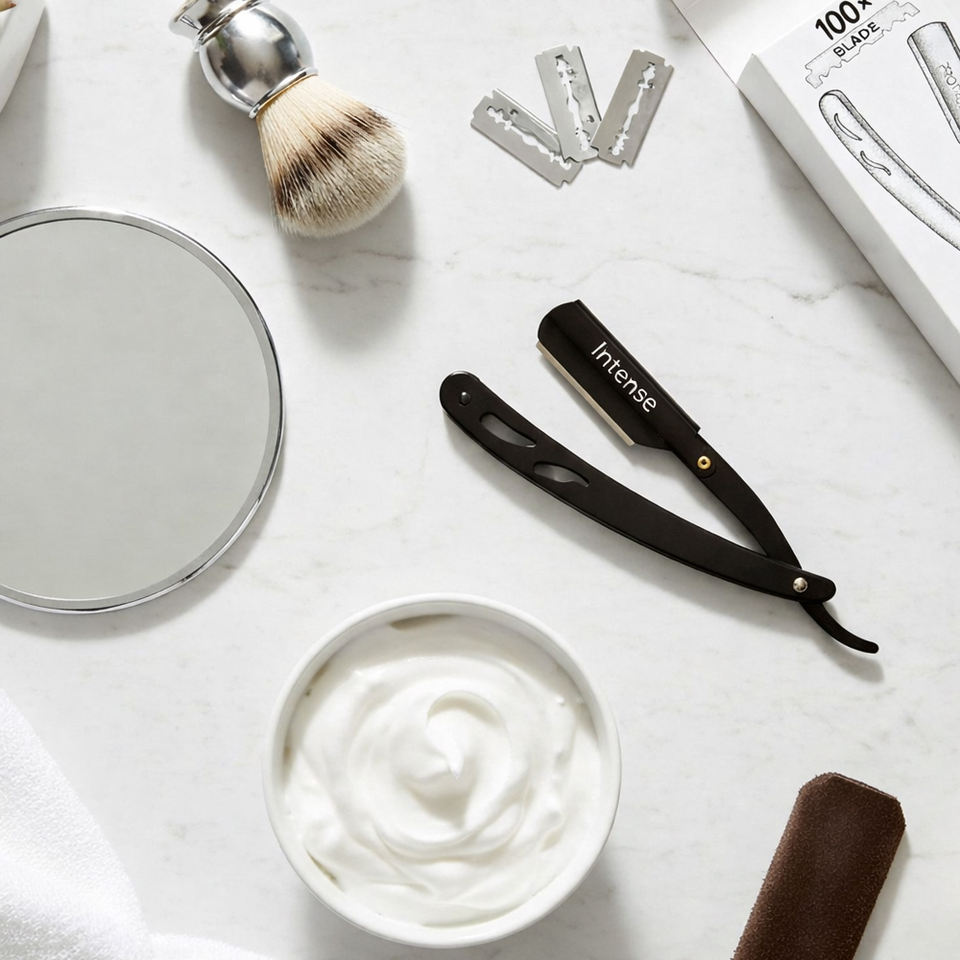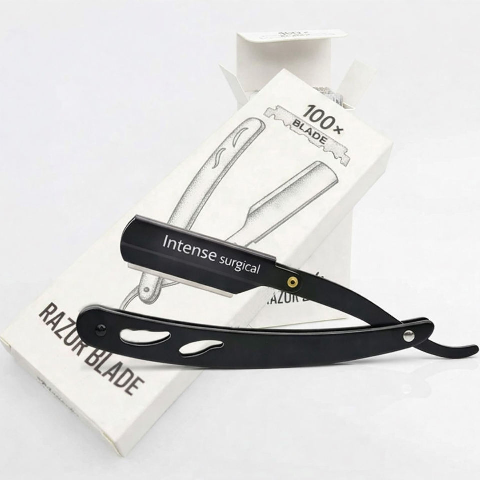 Rasoir droit professionnel en acier inoxydable à lame unique avec manche en plastique, idéal pour la barbierie et l'utilisation en salon de coiffure pour hommes.