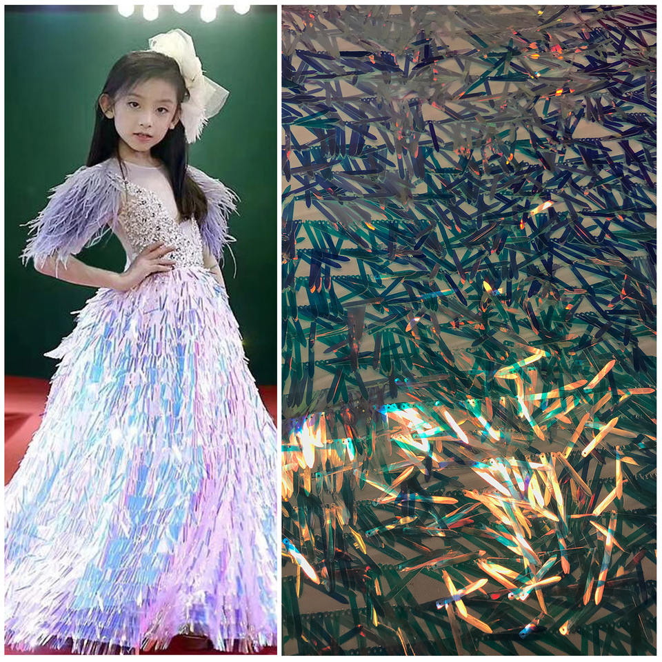 Tissu brodé irisé à couleur changeante, 50 m, tissu en maille extensible avec paillettes pour robe, 40mm, vente en gros