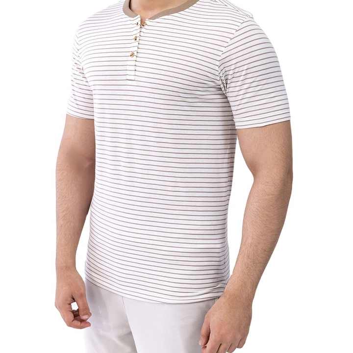 Vente en gros de t-shirt rayé à col Henley pour hommes nouvelle mode t-shirt boutonné à manches courtes en coton et polyester coupe ajustée OEM marque personnalisée