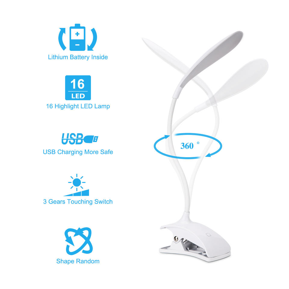 En gros Étudiants Lecture Bureau Apprentissage LED Charge Lampe De Bureau Corps Blanc Flexible USB Pince Protection Des Yeux Petite Lampe De Bureau