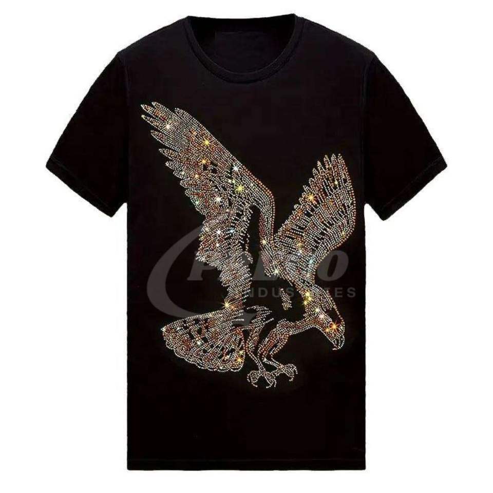 T-shirts personnalisés élégants de marque pour hommes avec transfert de strass, noirs, décontractés, fitness, unisexe, haute qualité, respirants, séchage rapide, vente en gros