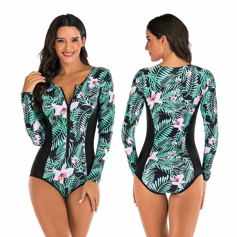 Vente en gros, maillots de bain sublimation pour dames, bikini manches longues pour filles, style fermeture éclair, maillots de bain pour filles