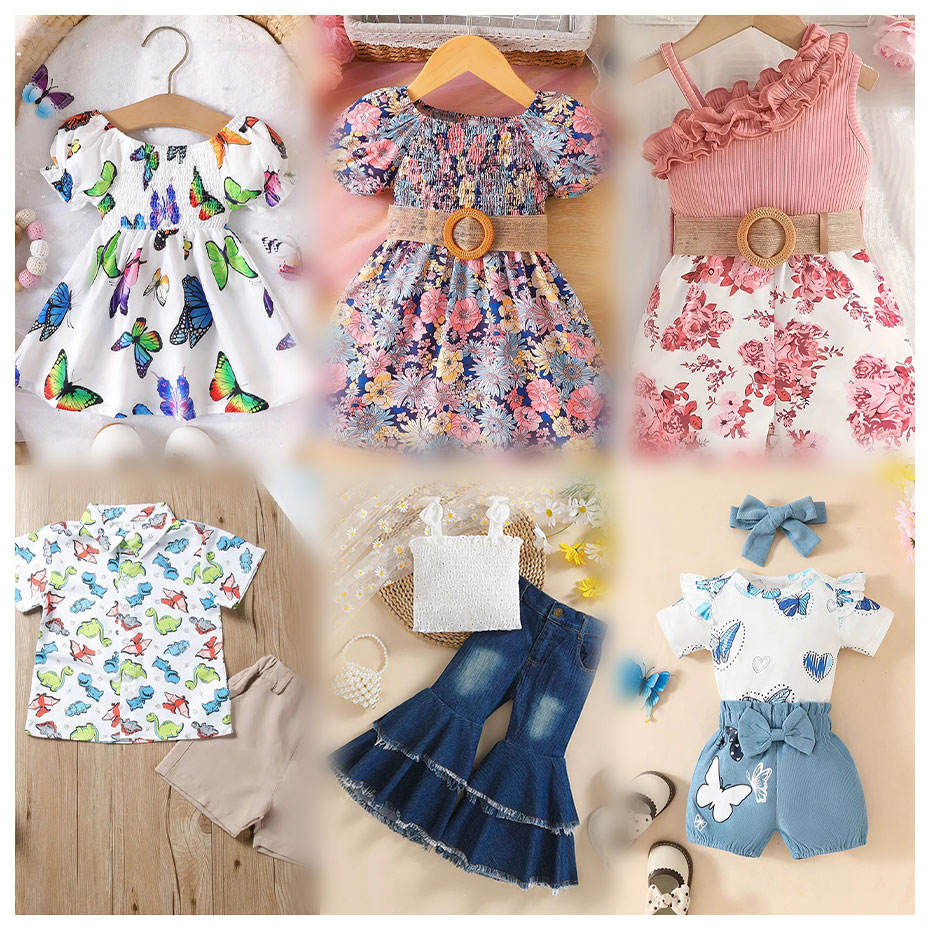 Wholesale Summer Children's Casual Clothing Inventory Mixed Used & Random Shipment Featuring Cartoon Print Design