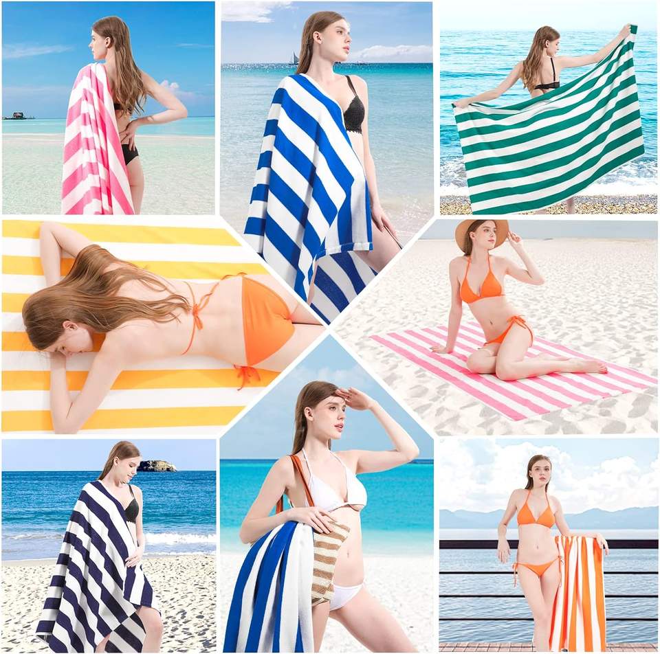 Vente en gros de serviette de plage d'été à séchage rapide sublimation personnalisée imprimé logo en microfibre sans sable pour les vacances à rayures 70 140