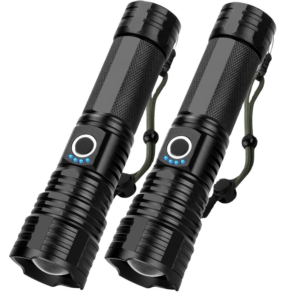 Lampe torche LED super lumineuse à 5 modes, rechargeable par USB, pour situations d'urgence, camping, usage domestique, design tactique réglable