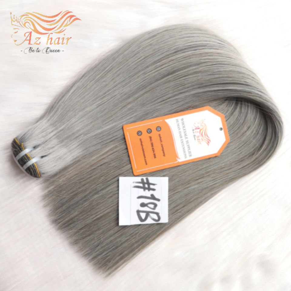 Vente en gros Extensions de trame de cheveux humains Remy couleur argent fond épais super doublement dessiné