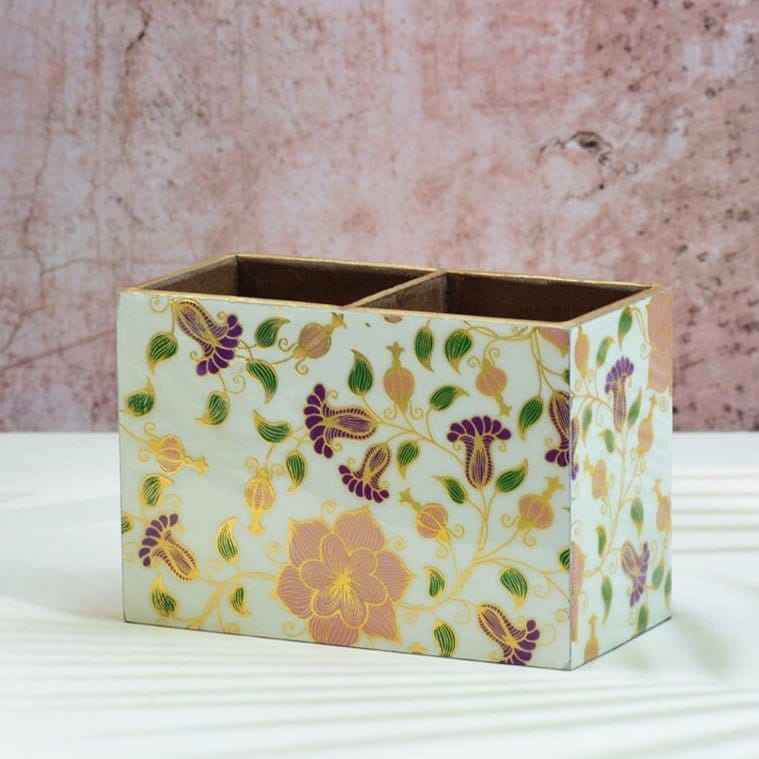 Support de brosses à dents en résine à motifs floraux incrustés de os, accessoire de salle de bain, organiseur de bureau pour stylos et crayons, vente en gros